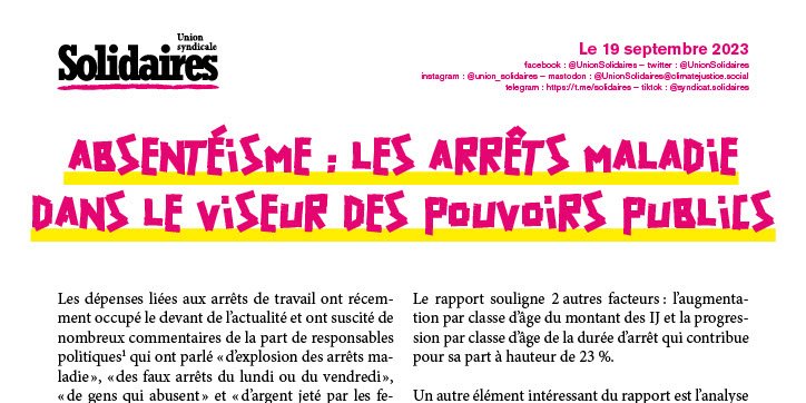 Oui ces données sont alarmantes et confirment la nécessité d’appréhender les spécificités des situations de travail, de comprendre les causes de l’absentéisme pour le réduire. Certes il peut y avoir des abus et y mettre un terme est légitime. Mais ce qui ne l’est pas, c’est la nature de la réponse du politique purement comptable et stigmatisante pour les salarié·es et la profession médicale et qui ne règlera rien au fond.