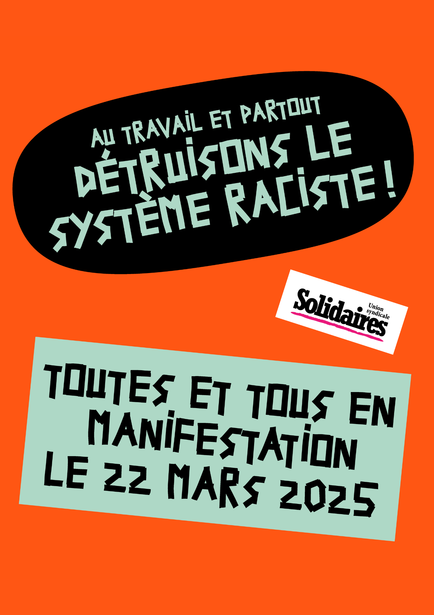 Appel collectif dans le cadre de la Journée internationale contre le racisme, mobilisation partout sur le territoire le samedi 22 mars 2025.